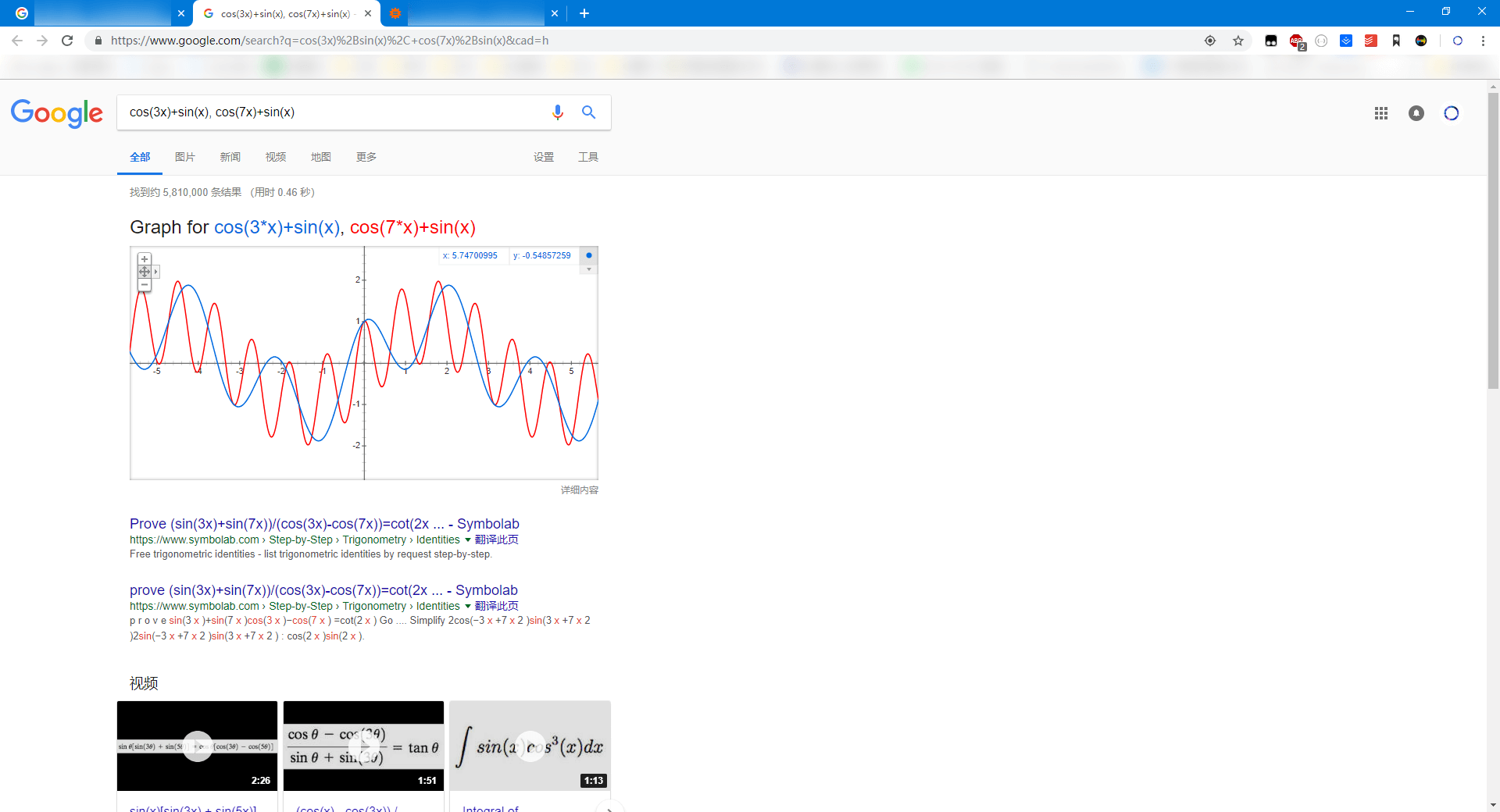倘若进行一些复杂的计算,输入算式之后可以直接回车调用搜索,Google 可以将三角函数,指数函数,对数函数以及三维坐标转换为图形,WolframAlpha 则可以给出方程的解析过程。