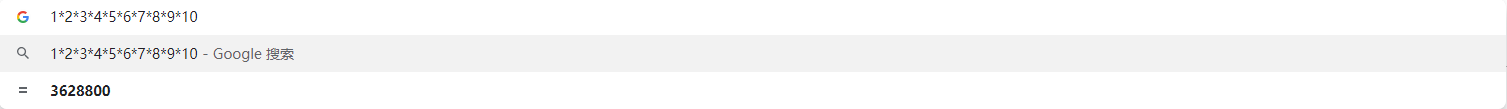 Chrome 可以作为一个简易的计算器。在 Omnibox 中,输入一些简单的计算式,Chrome 会在 Omnibox 的搜索建议中给出计算的答案。除了常见的加减乘除以外,阶乘,圆周率也是可以用于计算的